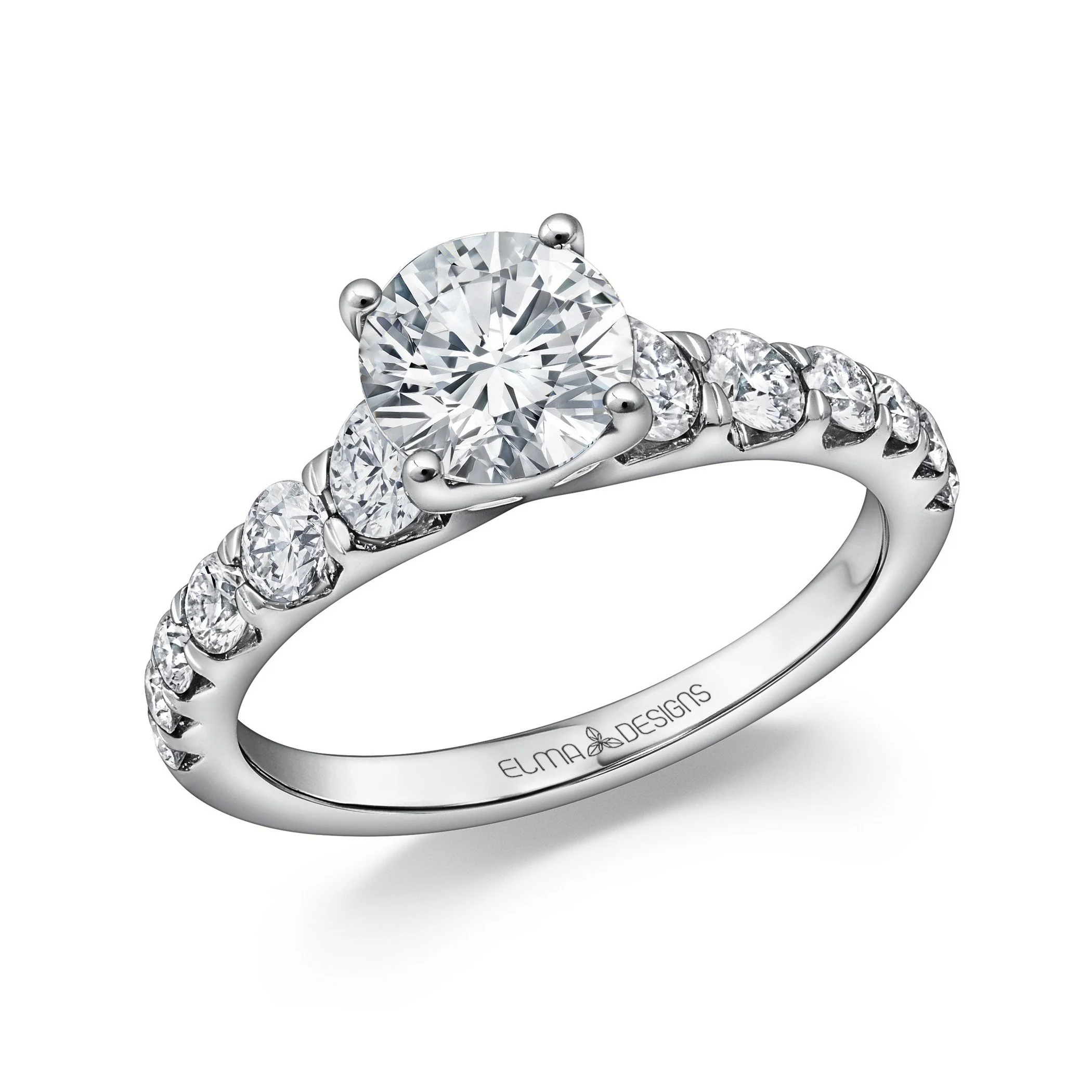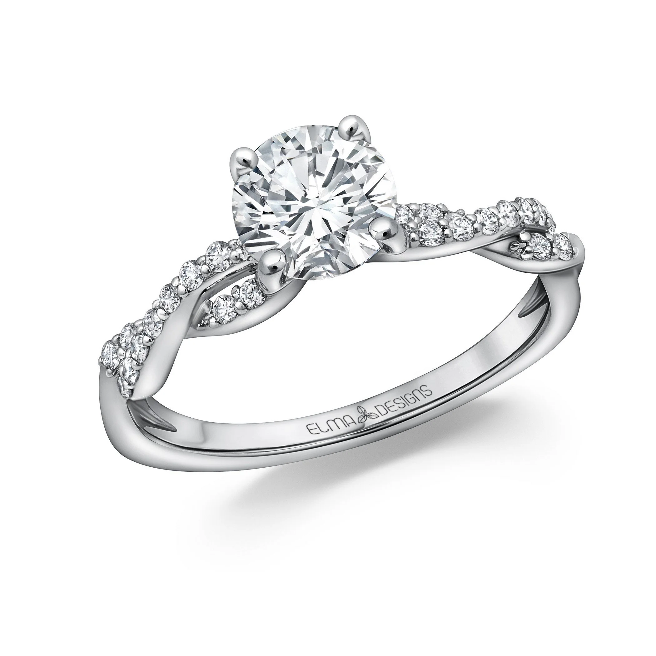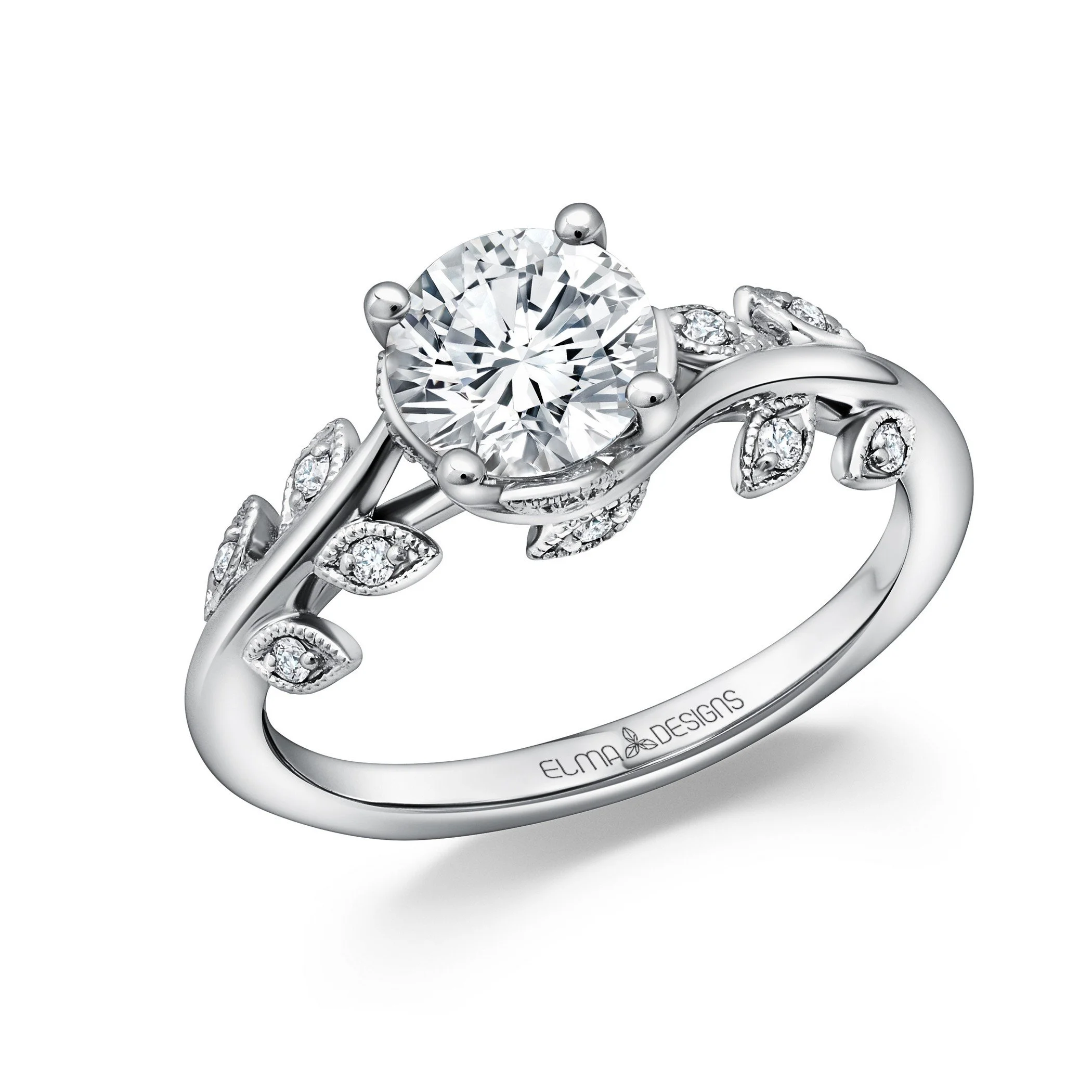 Oletowne Jewelers is proud to offer Elma Designed semi-mounts in-store. These elegant rings are crafted in 14K white gold and feature natural side diamonds, with an open center setting that allows you to choose the perfect center stone.
